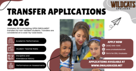 Onalaska ISD is accepting OPEN ENROLLMENT transfers for non-resident students. Transfers are considered on a case-by-case basis and require approval by the superintendent or designee. Criteria for approval includes academic performance, student-teacher ratio, discipline, attendance, and performance on all sections of the most recent STAAR or other recognized assessment. Transfer Application . . .